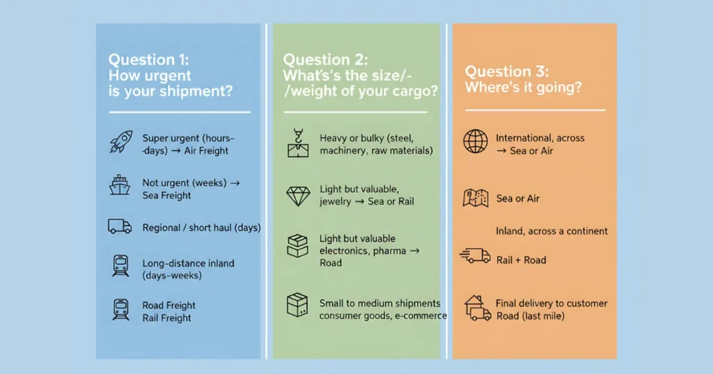 Now, here’s the truth bomb: there’s no single “best” mode of transport. Air, sea, rail, and road each have their superpowers—and their limitations. What works brilliantly for one shipment could be a disaster for another. That’s why the smartest shippers don’t just ask, “How do I move this?” but rather, “What’s the best mode for this specific cargo, deadline, and budget?”